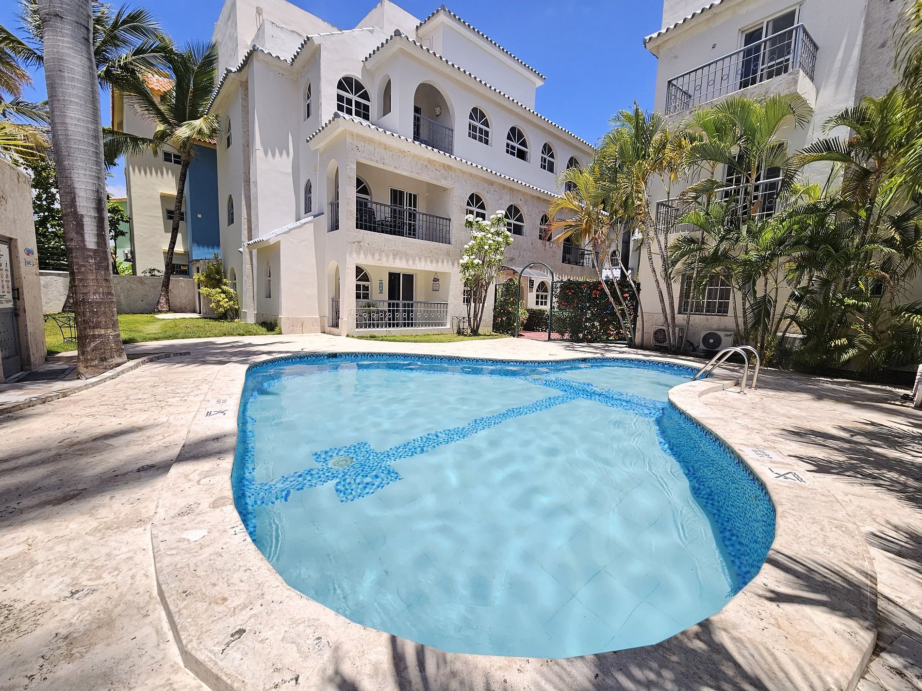 1)- El apartamento está situado en plata baja, el uso de la piscina es de 9:00AM a 07:00PM diariamente.